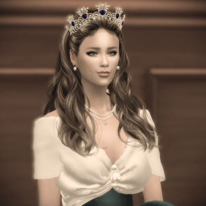 Queen Helena von Ahrensberg – Monarch. Mother. Mirror. Early forties, born in Windenburg, reigning from Schloss Falkenstein. Daughter of Baroness Clara Montfort-Yates. Wife of King Alexander, mother of four. Known for her poise, restraint, and sapphire diplomacy. Chosen by love, not lineage—met Alexander by accident, not arrangement. Often feels like a ceremonial widow. Once knocked on Victoria’s door barefoot with dessert wine. Still echoes.