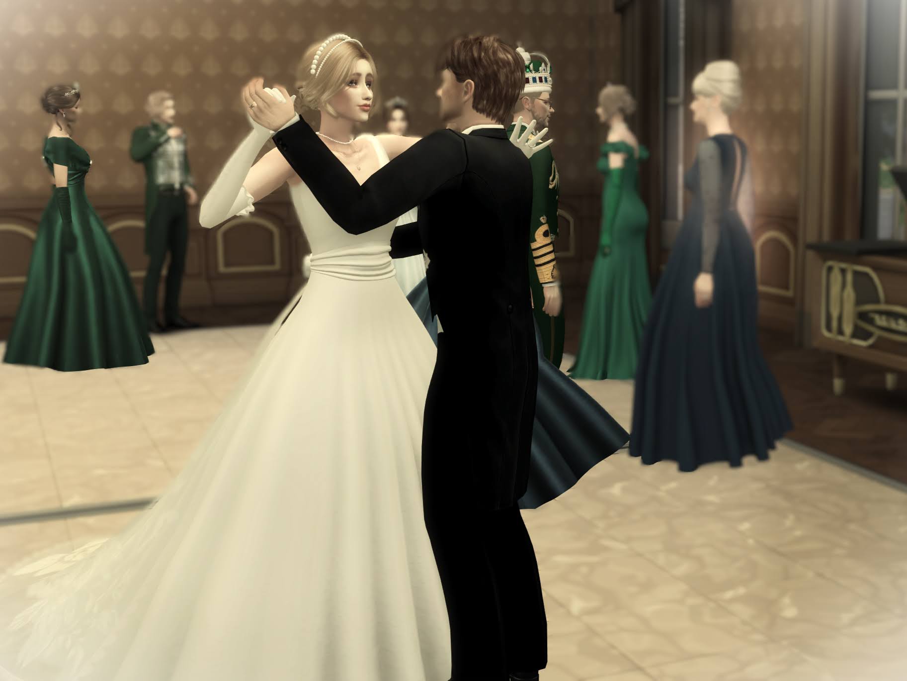As the dance reaches its climax, the modern tune fades out and only the waltz music remains as we seamlessly transition into a more traditional waltz, our steps falling into perfect harmony. The playful energy gives way to a romantic elegance, and the guests continue to watch with admiration as we glide across the dance floor, hand in hand.