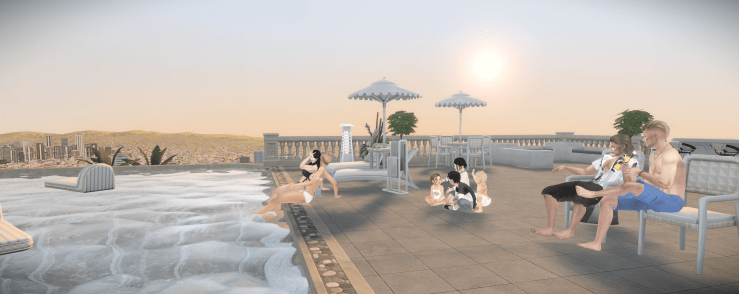 The rooftop pool shimmered in the fading light, casting gold across the glass railings and the sleek lounge chairs Jasper insisted were imported from Milan. The skyline of Del Sol Valley stretched out in one direction—all glitter and ambition—while the ocean glowed on the other side like a promise no one could keep.