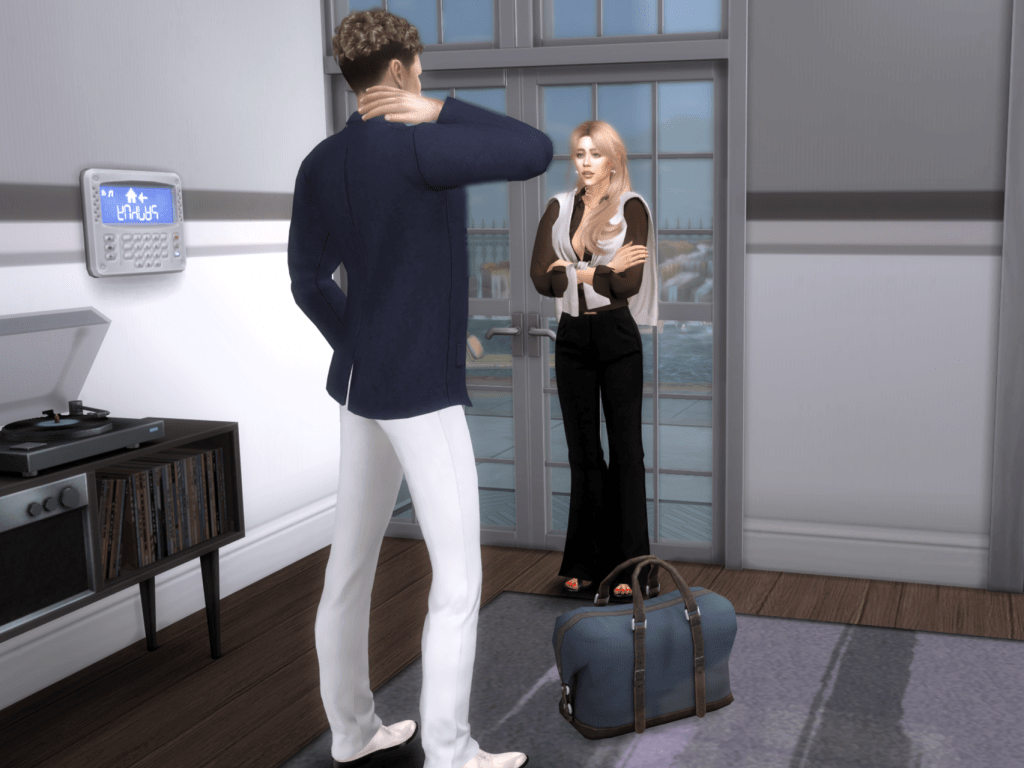 Her arms crossed. Her expression sharpened. He shifted, uncomfortable, and started unpacking just to have something to do.