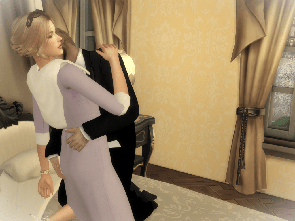 He climbed off the bed, clearly annoyed—furious, even—and disappointed. He stepped to the mirror to straighten his clothes. I joined him, smoothing his collar, brushing a wrinkle from his shirt, and gently pushing a stray lock of hair back from his forehead. His shoulders eased under my touch, the tension in him softening just a little.
