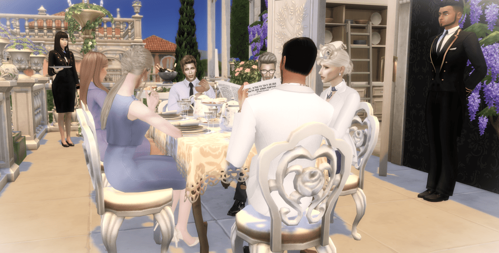 We were on the terrace overlooking the water, the table set with coffee, pastries, and the kind of delicate lunch that made me feel like I should sit up straighter. Eloise was already nibbling on a croissant, Geneviève was stirring her tea with that serene elegance she was born with, and Charles was reading the newspaper like a retired sovereign who still knew everything before it hit print.