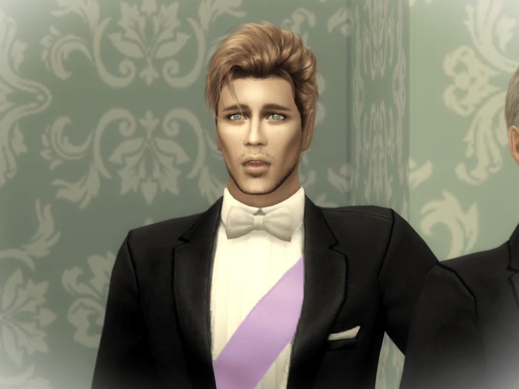 I looked him up and down. Elegant, but casual by his standards: a dark vest, matching slacks, and a lavender‑toned button‑down — Beaumont colors. Effortless. Annoyingly perfect.