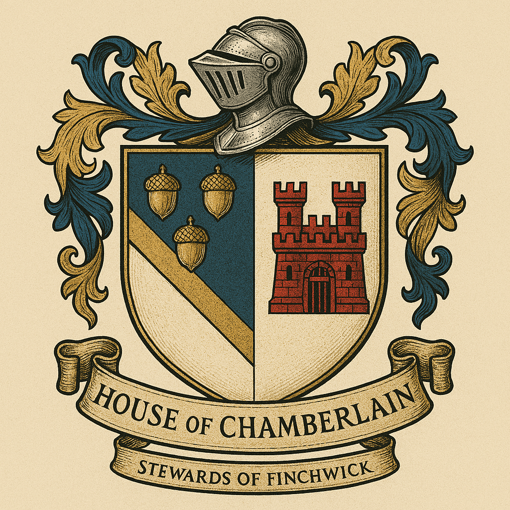 A noble house of enduring honor, the Chamberlains stand as stewards of Finchwick, embodying resilience and dignity despite their checkered history. Known for their steadfast commitment to urban development and governance, the Chamberlains have quietly rebuilt their reputation after scandals that once tested their resolve. Today, they represent a model of principled leadership, generational renewal, and quiet grace.