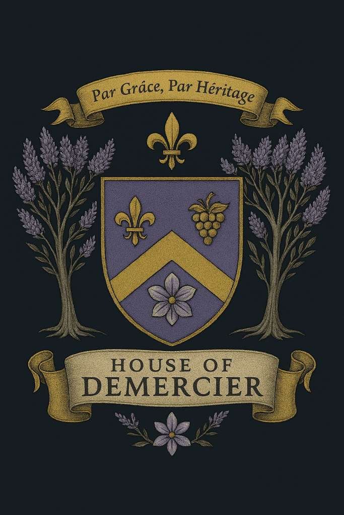 A noble family of French heritage, the DeMerciers have risen to prominence through artistry, philanthropy, and wine craftsmanship. While their influence spans across realms, their recent elevation and entrepreneurial foundations keep them within the ranks of the lesser houses.