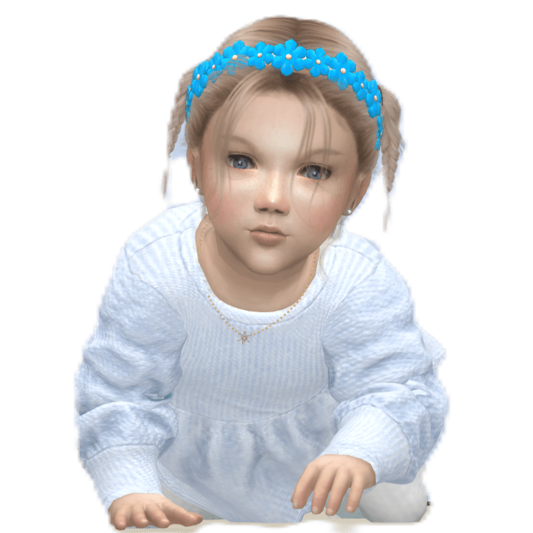 - Appearance: Soft blonde hair and brilliant blue eyes inherited from her father